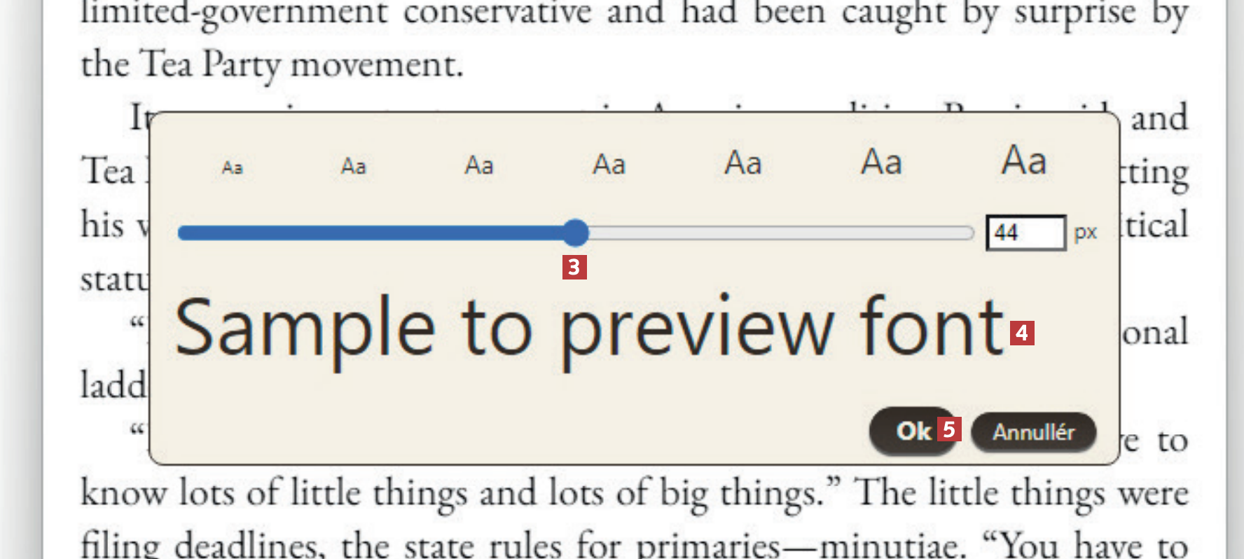 Käytä liukuvalitsinta 3. Pidä hiiren painiketta painettuna ja vedä oikealle suurentaaksesi kirjaimia. Näet tekstin koon esikatseluna ikkunan keskellä 4. Valitse Ok 5, kun olet tyytyväinen tekstin kokoon.