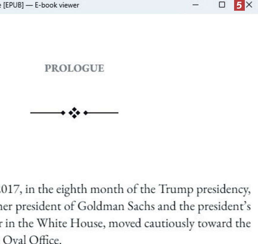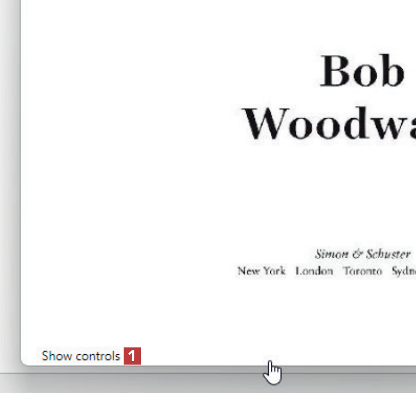 Avaa ensin e-kirja Calibre-ohjelmassa. Kun e-kirja on avattu, pidä hiiren osoitin ikkunan alaosassa, jolloin näkyviin tulee teksti Show controls. Napsauta tekstiä 1.