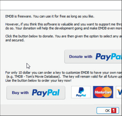 Lataa Eric’s Movie Database Etunurkasta ja asenna se. Kun käynnistät ohjelman ensimmäistä kertaa, näytölle tulee yllä oleva ilmoitus. Napsauta painiketta OK 1 .