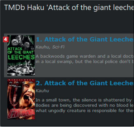 Tuloksissa näkyy hakuasi vastaavia elokuvia. Valitse oikea elokuva 4 ja napsauta painiketta OK.