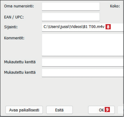 Elokuvatiedoston polku on nyt lisätty elokuvan tietoihin 8 . Napsauta OK 9 .