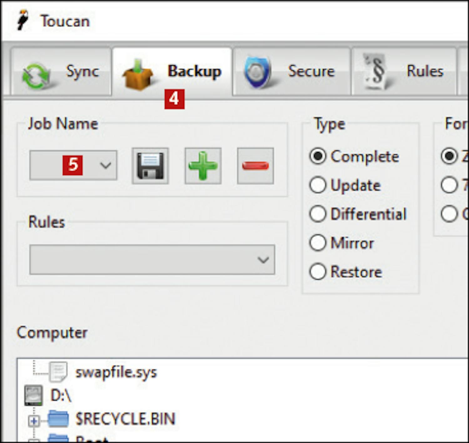 Tässä neuvotaan, kuinka Toucanilla tehdään ensimmäinen varmuuskopio niin sanotulla kopiointitehtävällä. Toucaniin voi määrittää useita tehtäviä – vaikkapa yhden omille kuville ja toisen tärkeille asiakirjoille.