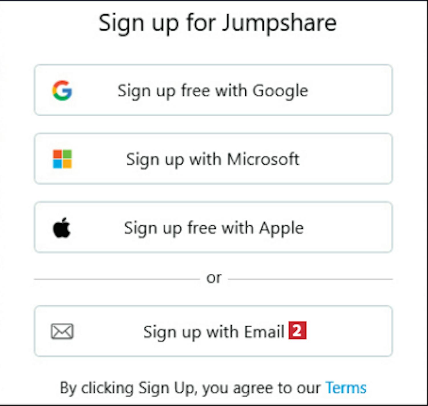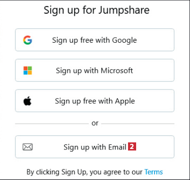 Sinun on luotava ilmainen käyttäjätili, jotta voit tallentaa näytösi tapahtumia Jumpsharella. Tämä on välttämätöntä, koska käyttäjätili kuuluu yksityiselle tallennepalvelimelle.
