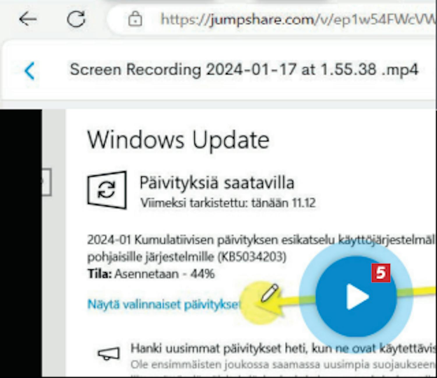 Jumpsharessa voit piirtää näytölle samalla kun tallennat. Näin videon vastaanottajan on helppo nähdä, mitä ruudulla tapahtuu. Voit esimerkiksi piirtää painiketta osoittavan nuolen.