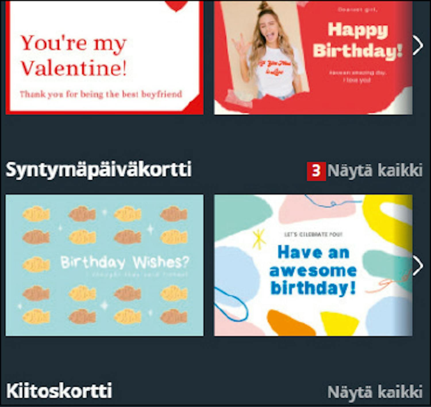 Ystävän tai sukulaisen syntymäpäivien lähestyessä Canva on oiva apu syntymäpäiväkortin suunnitteluun. Korttipohjaa voi muokata haluamallaan tavalla, ja tällä sivulla selviää, kuinka Canvaa käytetään mallipohjien muokkaamiseen ja vaikkapa värien vaihtamiseen itselle sopisiksi.