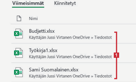 Avaa Excel. Yleensä näkyvissä on luettelo 1 viimeisimmistä tiedostoista. Jos niitä ei näy, noudata näitä ohjeita.