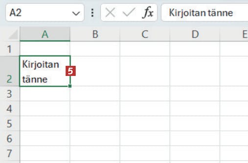 Tämä on ongelma: teksti jatkuu seuraavaan soluun 1. Valitse solu, johon kirjoitat 2. (Tässä solu A3).