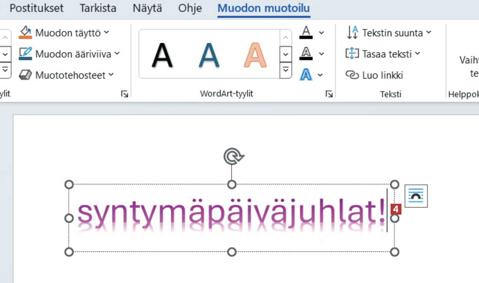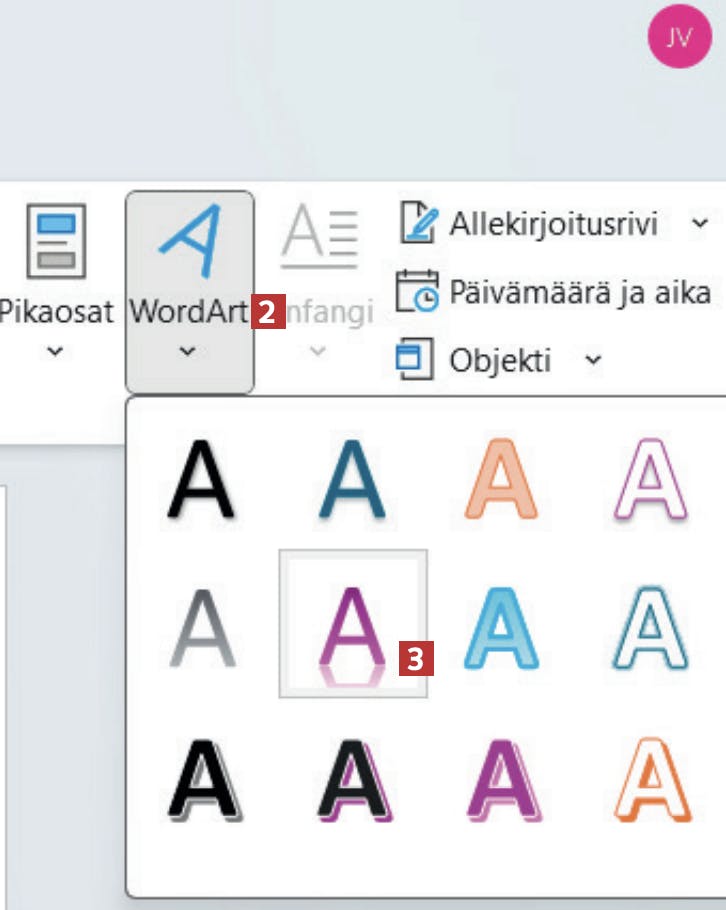 Olen nähnyt joidenkin muiden laatimissa Word-dokumenteissa usein hyvin taiteellisia otsikoita, joissa on jopa tyylikkäät varjot kirjainten alla. En kuitenkaan löydä vastaavaa kirjaisintyyliä omasta Wordistani. Miten tällaisia otsikoita voi tehdä?