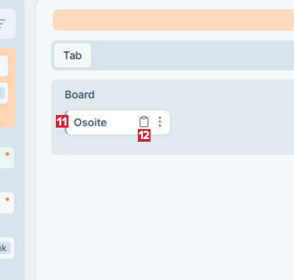 Leike on nyt kokoelmassa kohdassa Board. Vie hiiri leikkeen ylle 11 ja napsauta lisäyspainiketta 12 kopioidaksesi leikkeen leikepöydälle ja liittääksesi sen haluamaasi paikkaan.
