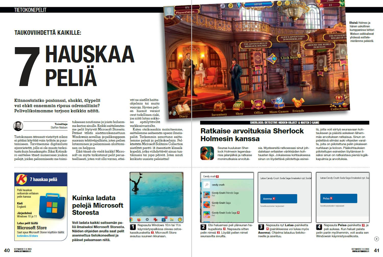 Tietokoneen ääressä vietettyä aikaa ei pitäisi käyttää vain työhön ja puurtamiseen. Tarvitsemme digitaalista ajanvietettä, jolla ei ole muuta tarkoitusta kuin hauskanpito. Siksi Kotimikro esittelee tässä numerossa joukon pelejä, joiden pelaamisesta me toimituksessa nautimme ja joista haluamme kertoa sinulle. Kaikki esittelemämme pelit löytyvät Microsoft Storesta.