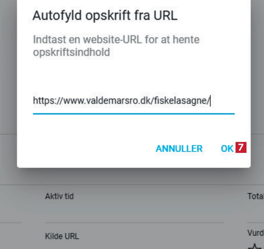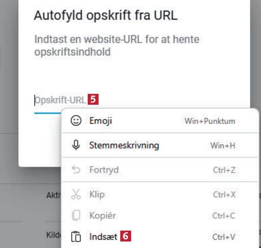 Napsauta hiiren kakkospainikkeella tekstikenttää, jossa lukee Recipe URL 5. Valitse seuraavaksi valikosta kohta Liitä 6.