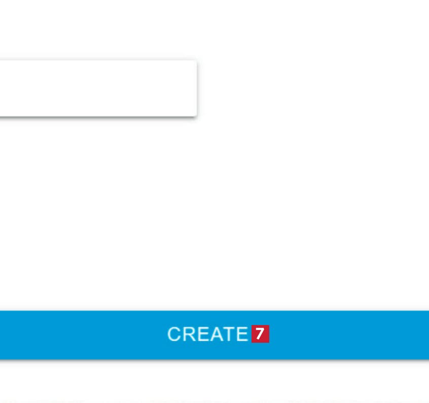 Napsauta tietojen täyttämisen ja salasanan valitsemisen jälkeen painiketta CREATE ACCOUNT 5. Voit halutessasi rekisteröityä myös Google-tililläsi 6.