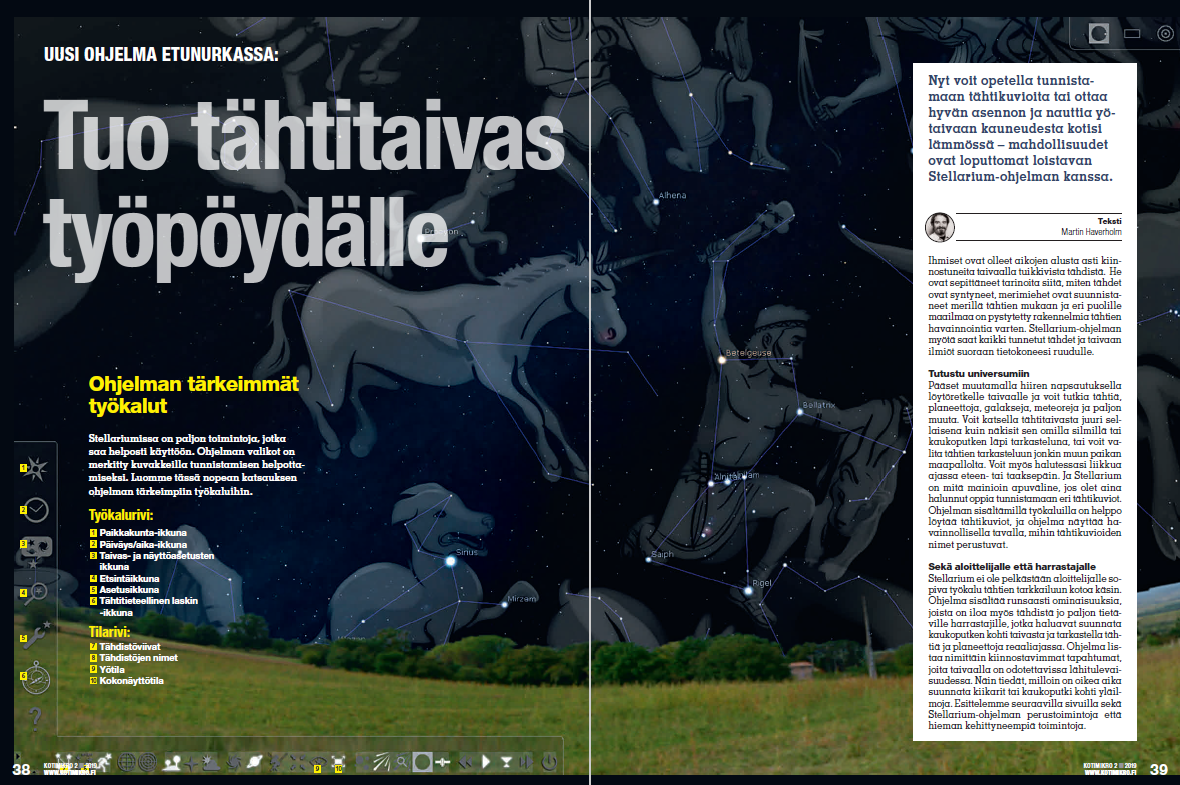 Tämän tähtiohjelman avulla voit ihailla ikkunastasi näkyvää yötaivasta, lähteä löytöretkelle omaan aurinkokuntaamme tai Linnunradan tuolle puolen. Matkan varrella saat runsaasti tietoa eri planeetoista, tähdistä ja tähtikuvioista. Ohjelman sisältämillä työkaluilla on helppo löytää tähtikuviot, ja ohjelma näyttää havainnollisella tavalla, mihin tähtikuvioiden nimet perustuvat.