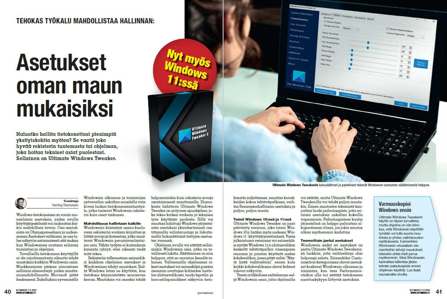 Kun Ultimate Windows Tweaker kysyy palautuspisteen tallentamisesta, kannattaa vastata myöntävästi. Silloin palaaminen takaisin on mahdollista, jos jokin ohjelmassa tehty asetus ei miellytäkään.