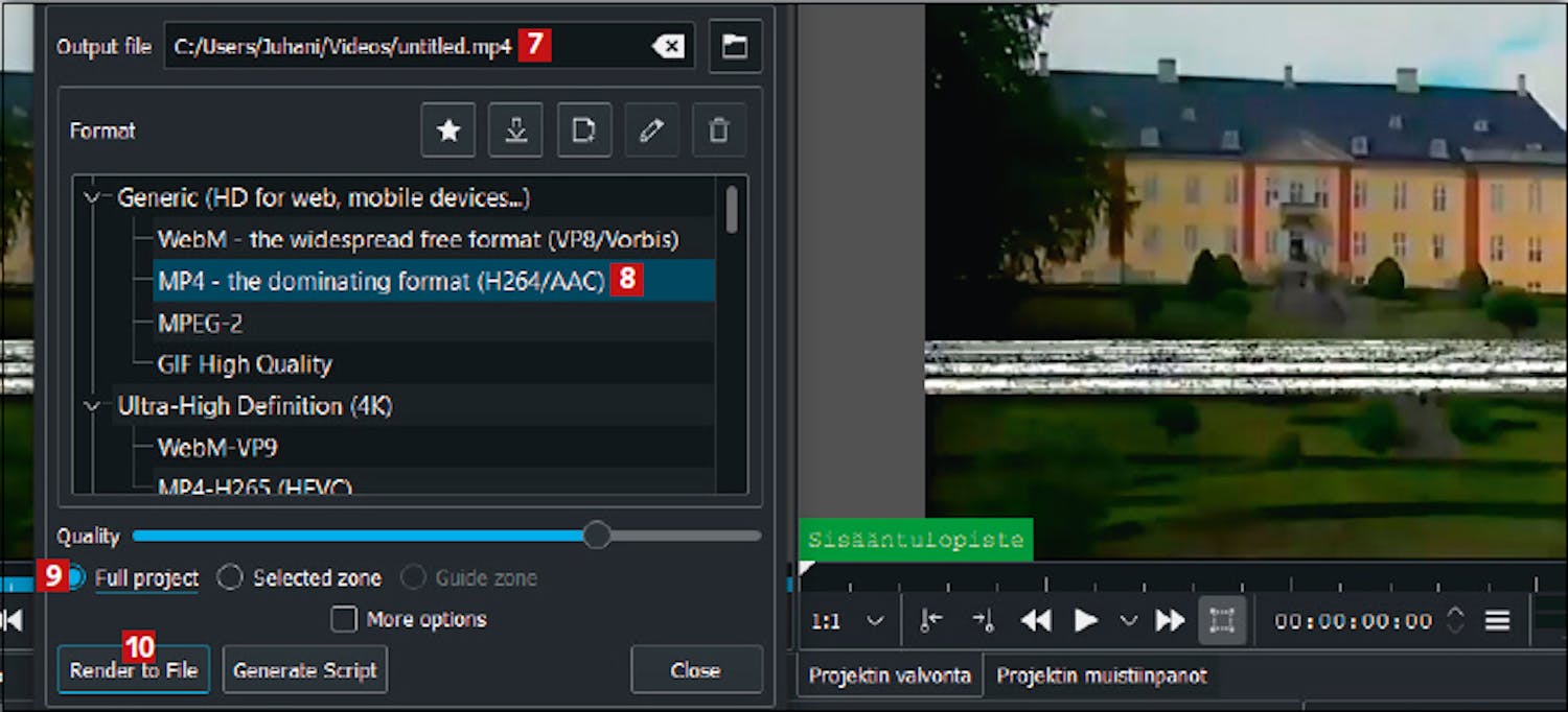 Vaikkapa neljän tunnin mittaisella videonauhalla on useita tv-ohjelmia tai elokuvia, jos niitä on nauhoitettu vähitellen televisiosta. Eri ohjelmat voi jakaa omiksi tallenteikseen näppärällä Kdenlive ohjelmalla.