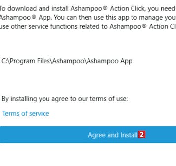 Jos Ashampoo App -sovellusta ei vielä löydy tietokoneeltasi, se asennetaan nyt. Napsauta painiketta Agree and Install 2. Valitse seuraavassa ikkunassa Accept all.