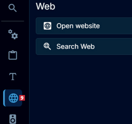 Valitse vasemmalta puolelta maapallokuvake 9. Täällä voit lisätä kotisivuja ja alempana kansioita sekä ohjelmia.
