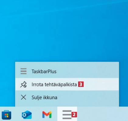 Ohjelma näkyy Windowsin tehtäväpalkissa. Napsauta hiiren kakkospainikkeella ohjelman kuvaketta 2 ja valitse Irrota tehtäväpalkista 3. Napsauta ikonia tehtäväpalkissa.