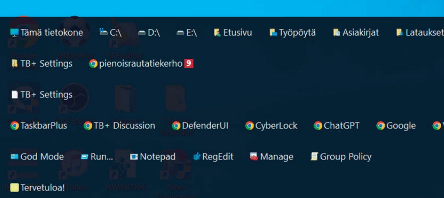 Kun olet laatinut pikakuvakkeet Windowsissa, voit järjestää ne siististi TaskbarPlus-ohjelmalla. Siten saat näytön alareunaan paneelin, jossa omat pikakuvakkeesi ovat koottuna.