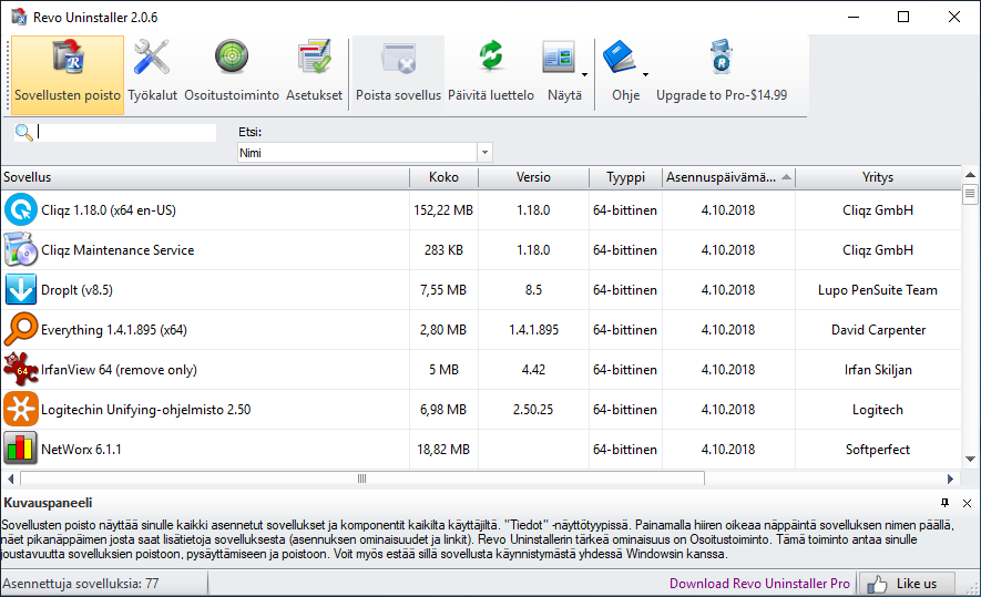 Windows 10:ssä on useita sisäänrakennettuja ohjelmia ja työkaluja. Joitakin niistä et ehkä ole koskaan käyttänyt, ja sellaiset ohjelmat ovat vain tallennustilan tuhlausta. Voit poistaa ne helposti Revo Uninstaller -ohjelmalla, joka poistaa myös ohjelmien jättämät tiedostot.