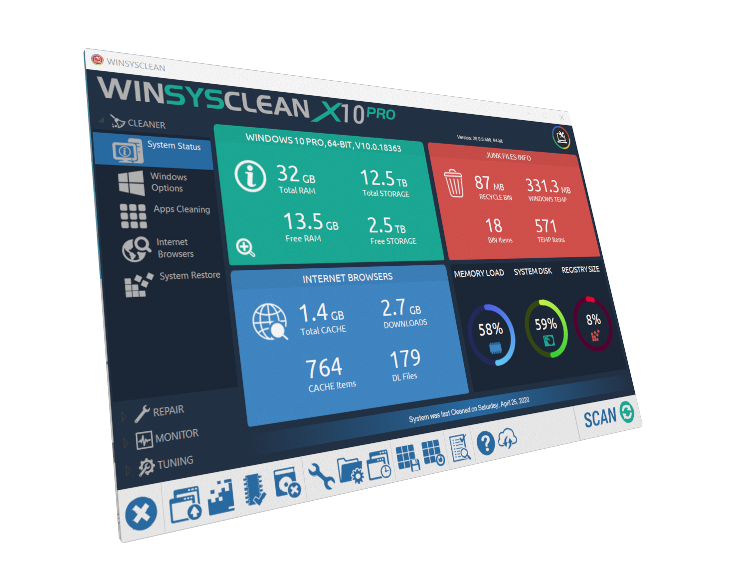 Nyt voit optimoida, puhdistaa ja korjata Windows-tietokoneesi ammattimaisen kaupallisen WinSysClean X10 PRO -ohjelman avulla, joka maksaa reilut 30 euroa.