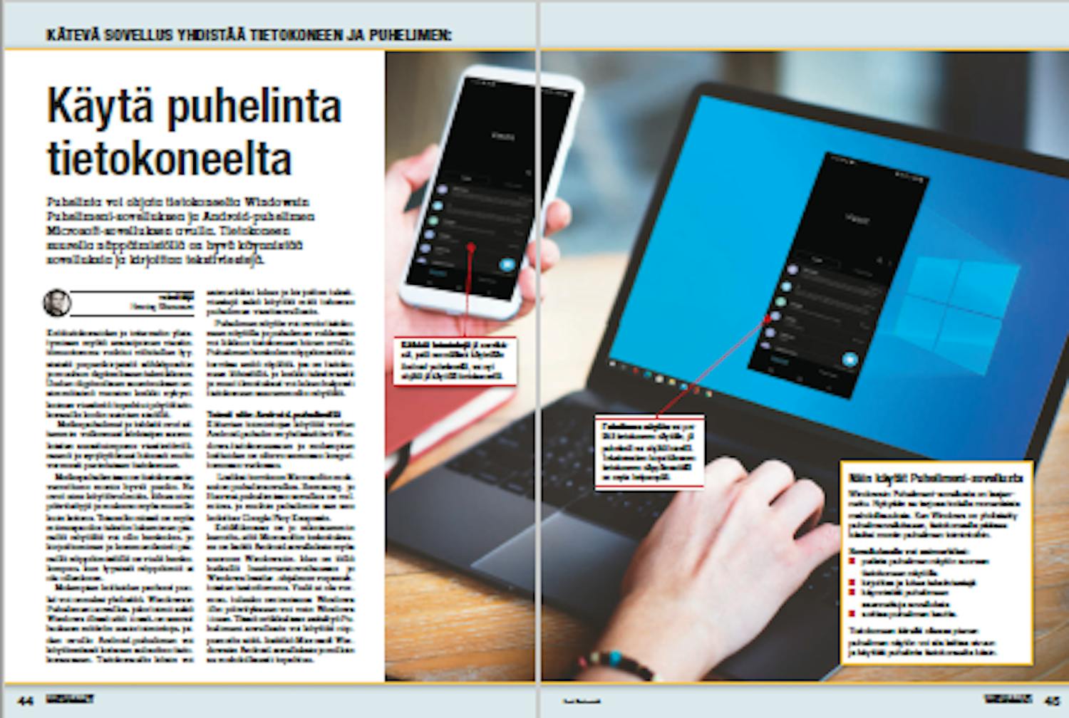 Kätevien toimintojen käyttöä varten Android-puhelin on yhdistettävä Windows- tietokoneeseen ja molempien laitteiden on oltava samassa langattomassa verkossa. Lisäksi tarvitaan Microsoftin maksuton puhelinsovellus. Samsung- ja Huawei-puhelimissa sovellus on valmiina, ja muihin puhelimiin sen saa ladattua Google Play Kaupasta.