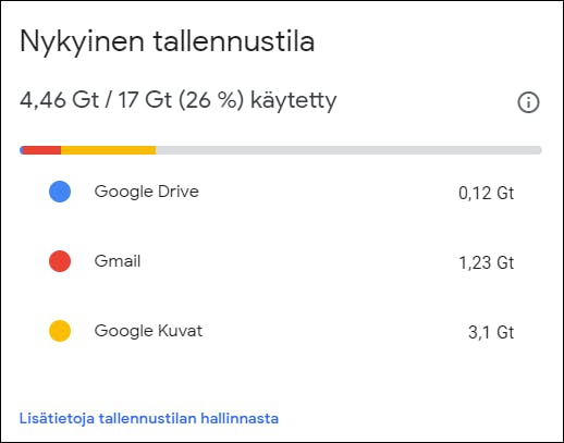 Maksuton pilvitila on rajallinen virtuaalivaranto myös Googlen palveluissa.