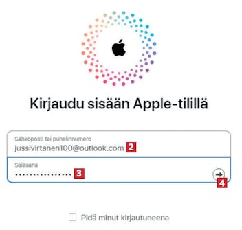 Avaa selain, mene osoitteeseen icloud.com/find/ ja napauta Kirjaudu sisään -painiketta 1 .