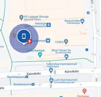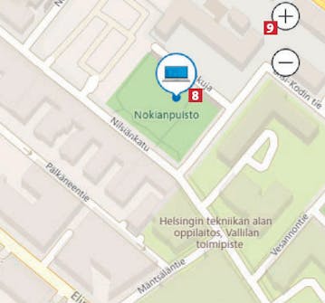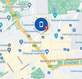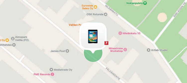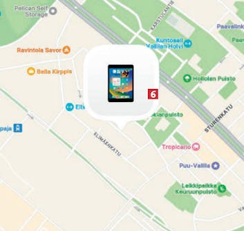Voit zoomata niin lähelle, että rakennukset ja katujen nimet näkyvät, jolloin pääset kartalla aivan kadonneen laitteesi lähelle 7.