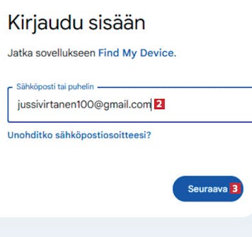 Avaa selain ja siirry sivulle google.com/android/find. Napauta Kirjaudu sisään -painiketta 1.