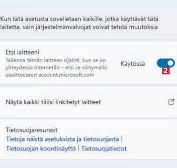 Käytä Windowsin Etsi laitteeni -toimintoa
