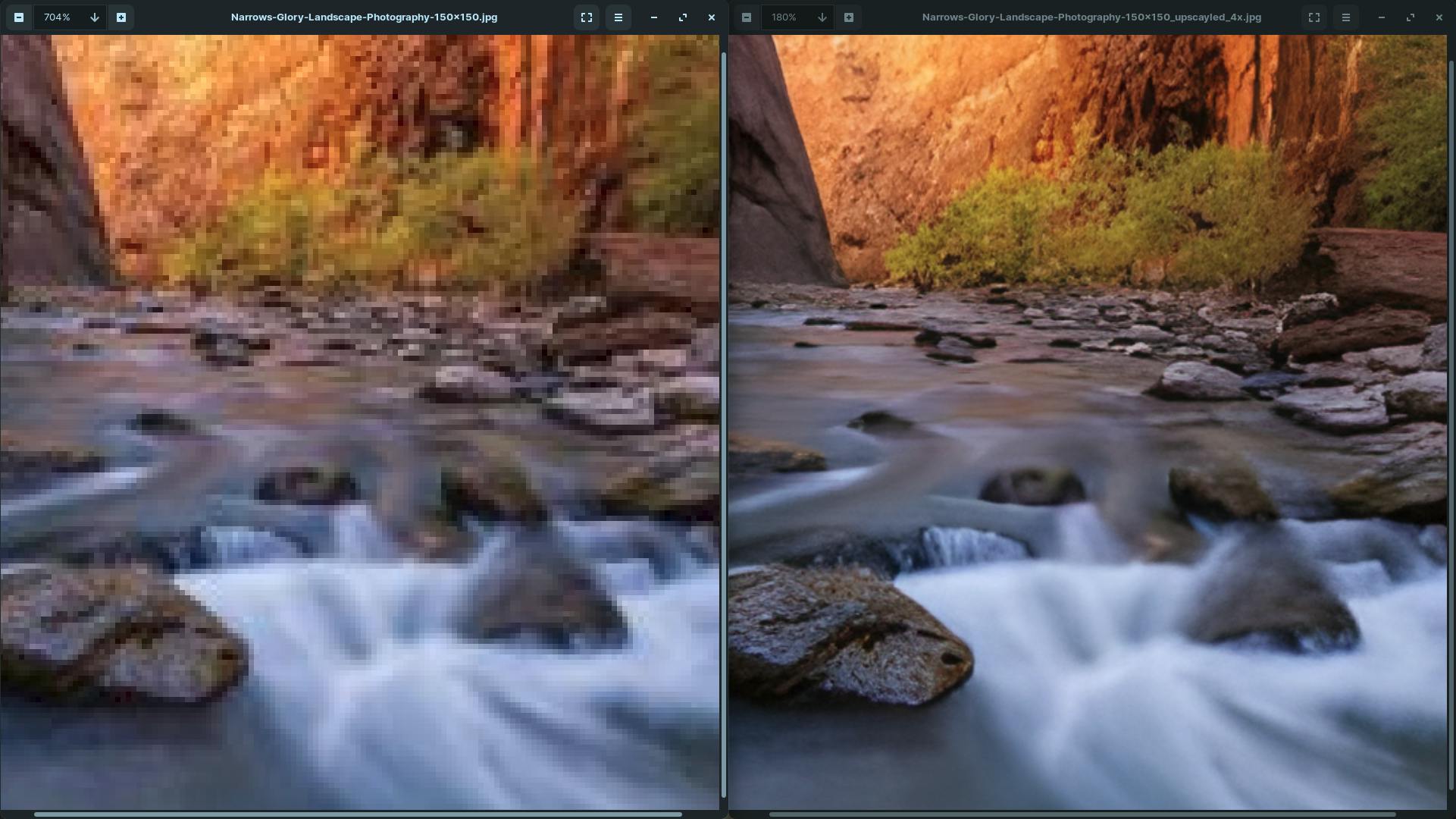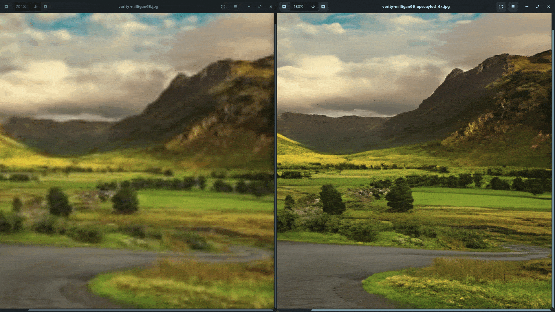 Alla näet esimerkkejä siitä, miltä kuvat näyttävät sen jälkeen, kun niitä on käsitelty Upscayl-työkalulla.