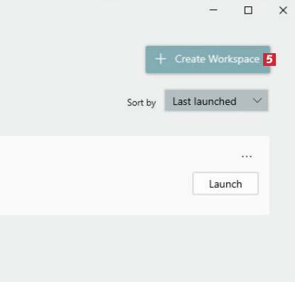 Voit aloittaa toisen työtilan perustamisen valitsemalla kohdan Create Workspace 5. Toista kohdat 6-11 edellisen aukeaman ohjeesta Valitse yhtä aikaa avautuvat ohjelmat.