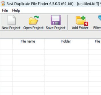 Lataa ensin Fast Duplicate File Finder kotisivuiltamme ja asenna se. Avaa ohjelma ja napsauta kohtaa Add Folder 1.