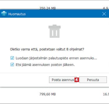 Napsauta oikeasta yläkulmasta painiketta Poista Ohjelma 3 , kun olet valinnut ensin kaikki koneesta poistettavat ohjelmat.