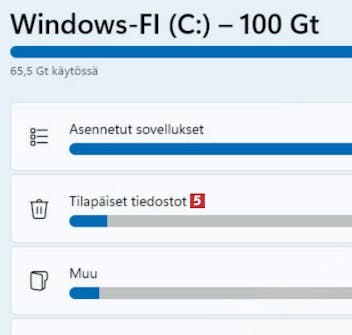 Valitse järjestelmäasetuksista kohta Tallennustila 4. Sitten Windows alkaa analysoida tallennustilan nykyistä tilannetta.