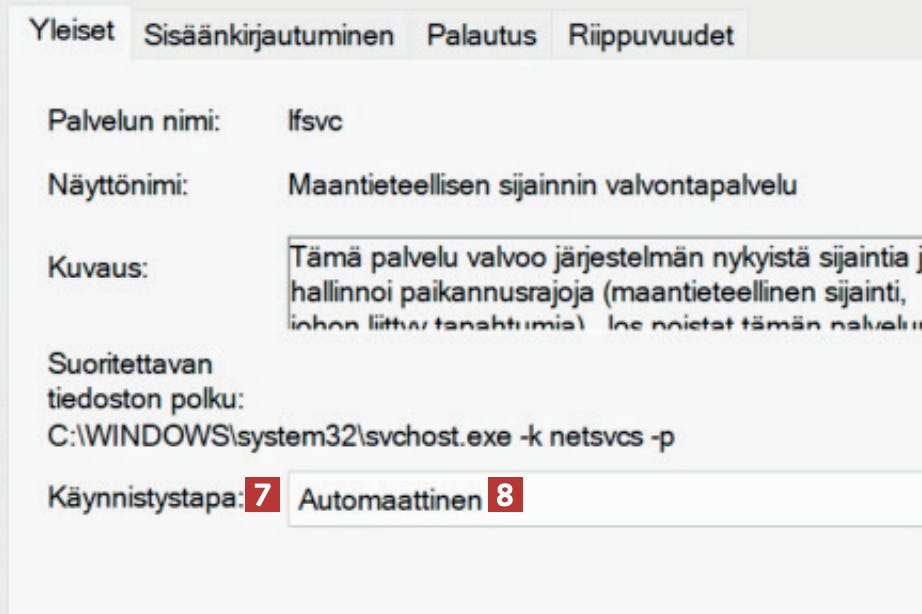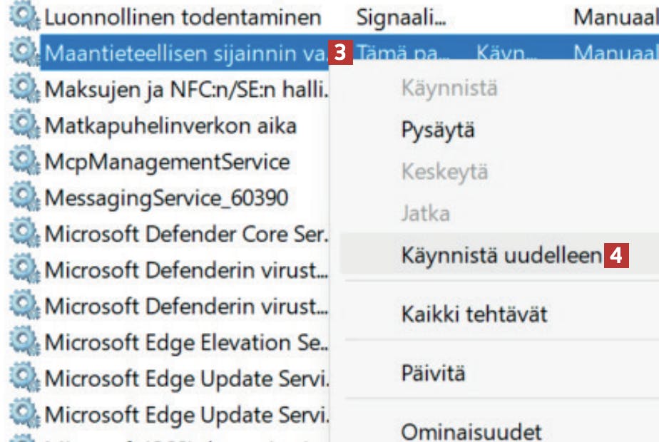 Valitse hiiren oikealla Maantieteellisen sijainnin valvontapalvelu 3. Valitse sitten Käynnistä uudelleen 4.