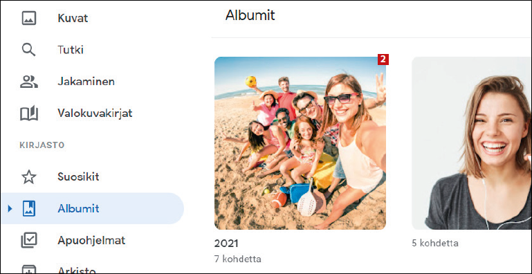 Siirry alla olevaan osoitteeseen ja valitse Albumit 1 .