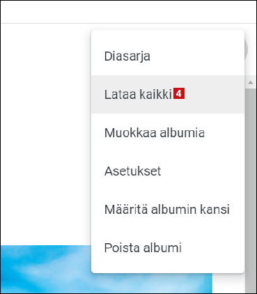 Tallenna kaikki albumin valokuvat valitsemalla vaihtoehto Lataa kaikki 4 .