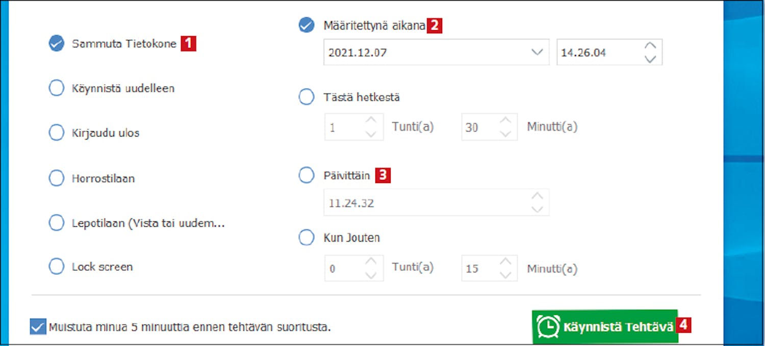 Valitse aika, jolloin tietokone sammuu automaattisesti