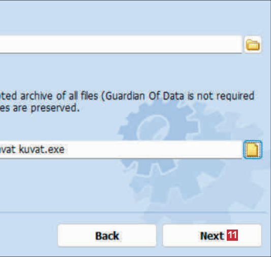 Kun sinä tai ystäväsi haluatte myöhemmin purkaa tiedostojen salauksen, riittää, että avaat Guardian Of Datan avulla luomasi exe-tiedoston. Ohjattu toiminto hoitaa loput vaivatta, vaikka ohjelmaa ei olisikaan asennettu.