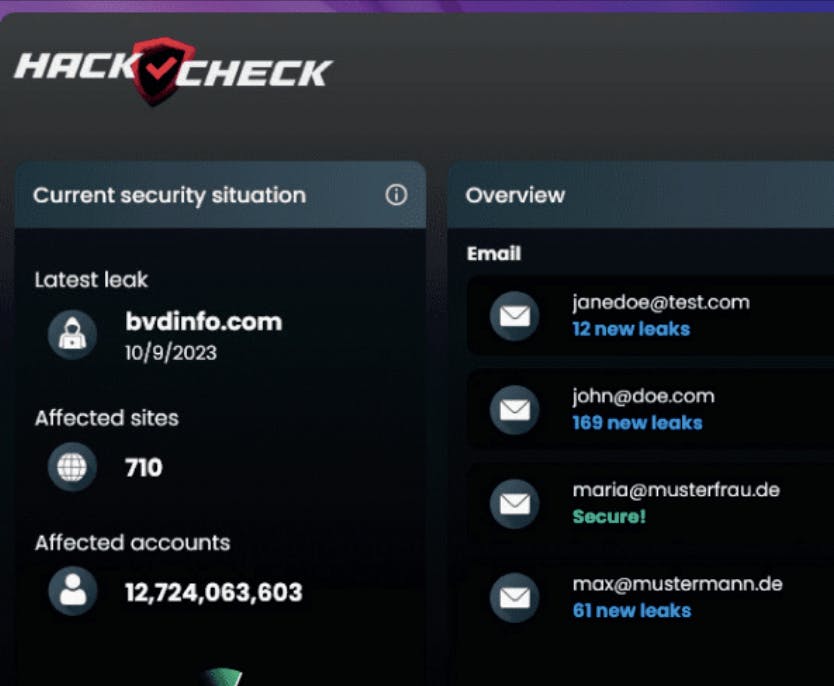 Voit ladata Abelssoft HackCheck -ohjelman verkkosivuiltamme. Se toimii tietokoneesi taustalla ja antaa varoituksen, jos jokin sähköpostiosoitteistasi on joutunut tietomurron kohteeksi.