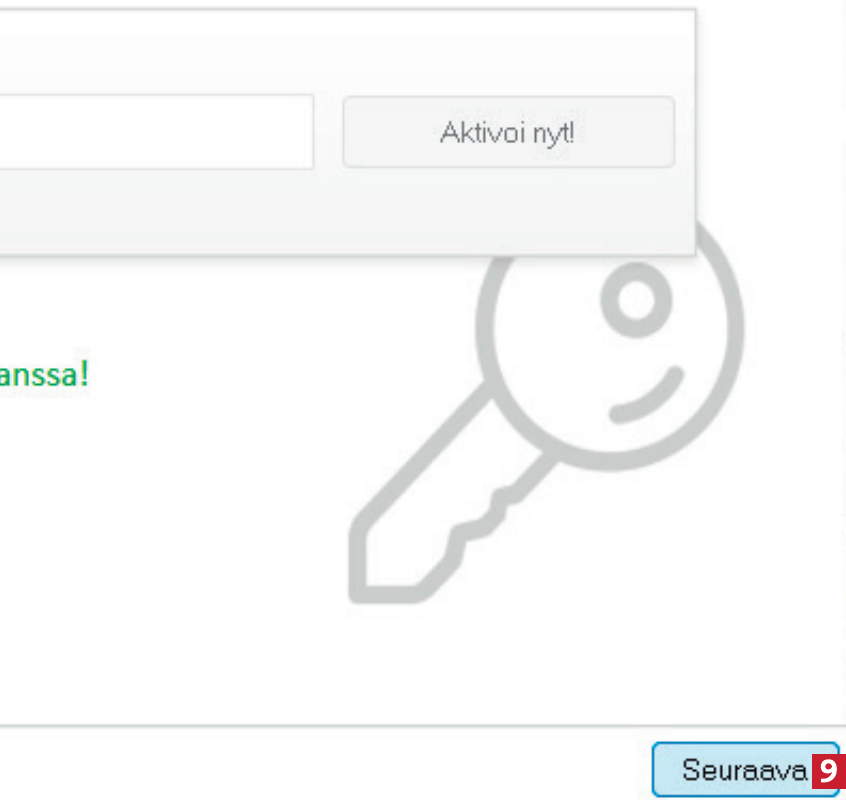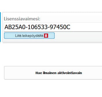 Aktivointikoodi on lähetetty sinulle. Kopioi koodi leikepöydälle napsauttamalla koodin 7 vieressä olevaa kuvaketta.