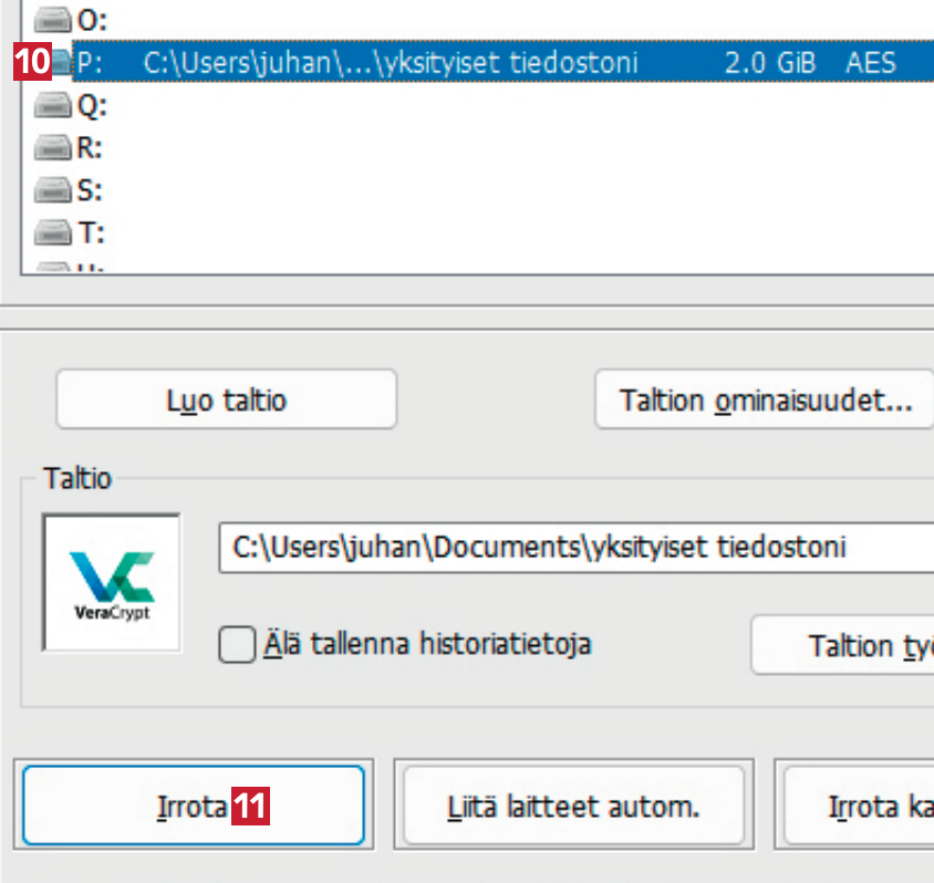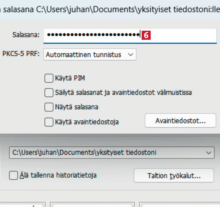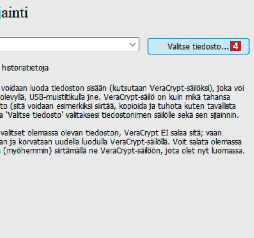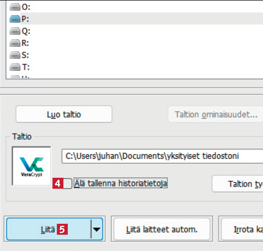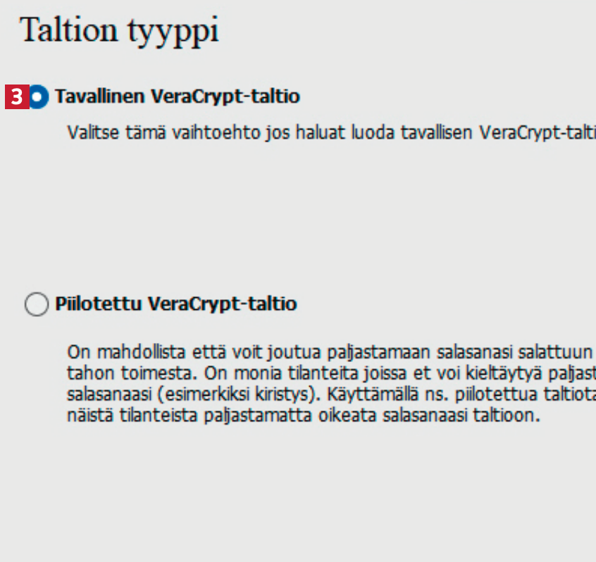 VeraCrypt-ohjelmalla voit tallentaa tärkeät tiedostosi salattuun asemaan tietokoneellasi, jolloin hakkerit eivät pääse niihin käsiksi. Toimi seuraavasti: