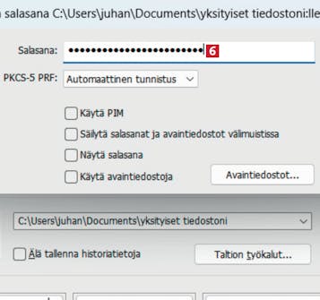 Määritä nyt, mihin kansioon tietokoneellasi salattu tiedosto tallennetaan. Napsauta sitten Valitse tiedosto… -painiketta 4.