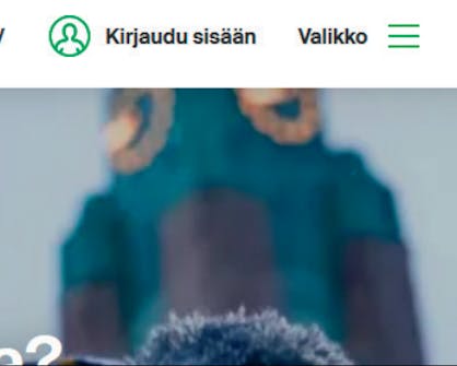 Valittuasi kohdan Asetusten hallinta ohjeiden vaiheen 6 mukaisesti Yle Areenan kohdalla etsi sivustolta aluksi kohta Kirjaudu. Se ei aina ole yhtä selkeästi esillä kuin tässä.