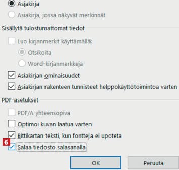 Tallennan usein Wordissä asiakirjat pdf-muodossa ennen niiden lähettämistä muille. Nyt haluan lähettää asiakirjan, jossa on henkilökohtaisia tietoja. Haluaisin suojata asiakirjan salasanalla, mutta voiko pdf-tiedostoa ylipäätään suojata salasanalla?