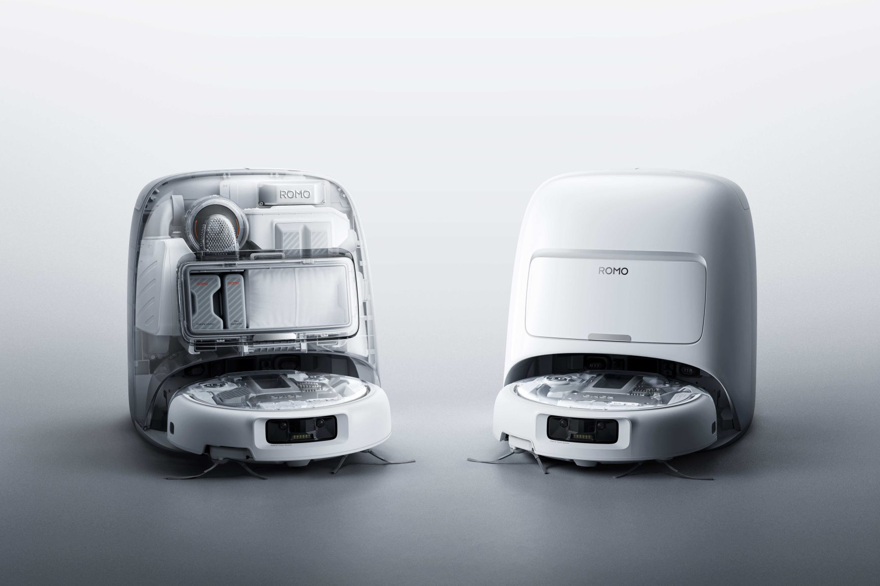 Valitettavasti Romo surisee useita tunteja, kuivatessaan kahta pyörivää moppiansa pesun jälkeen. Hajuton saippua tulee suljetusta patruunasta, joten siinä on käytettävä DJI:n omaa saippuaa.